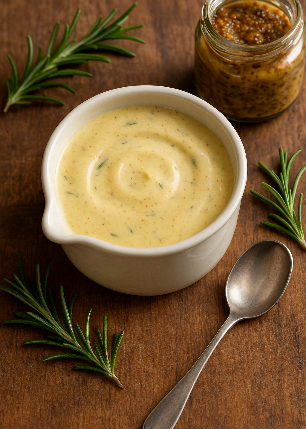 Crémeuse de duo de moutardes au romarin