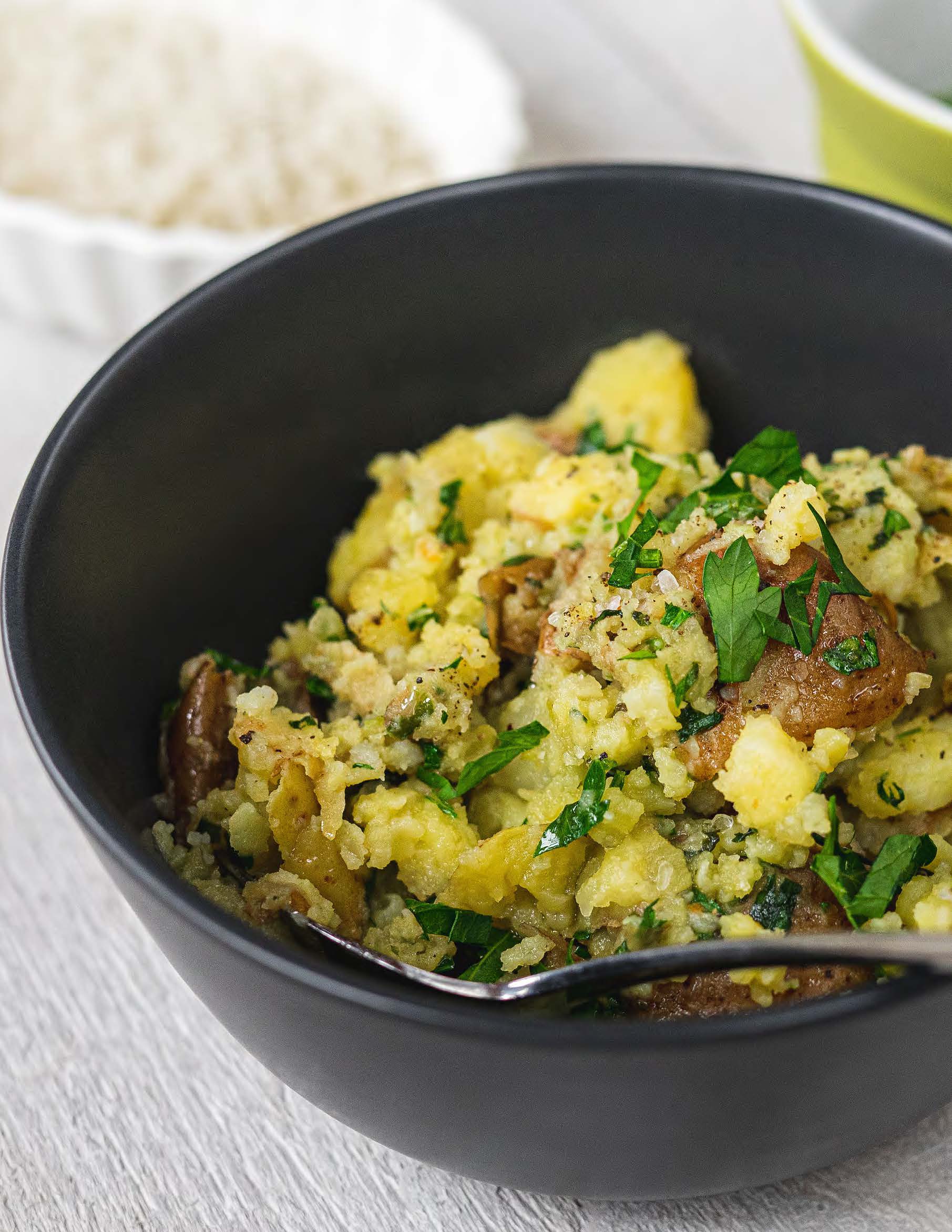 Égoutter les pommes de terre et les transférer dans un bol.